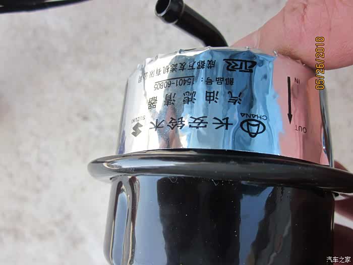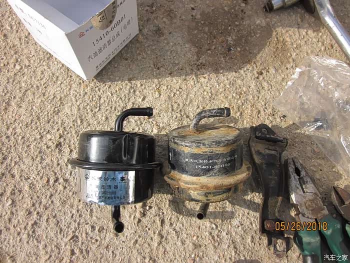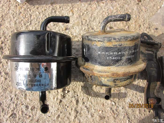 拆下的汽滤比较一下,原装的稍微小点,6万多公里没换过