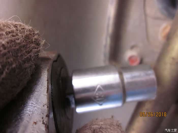 汽滤固定座螺丝扭断了,只好拆下整个底座,先用角磨机割平,再用手电钻先钻一个小孔,再用6毫米的钻个大孔钻到一半断丝随钻头就出去了,螺母丝孔完好无损