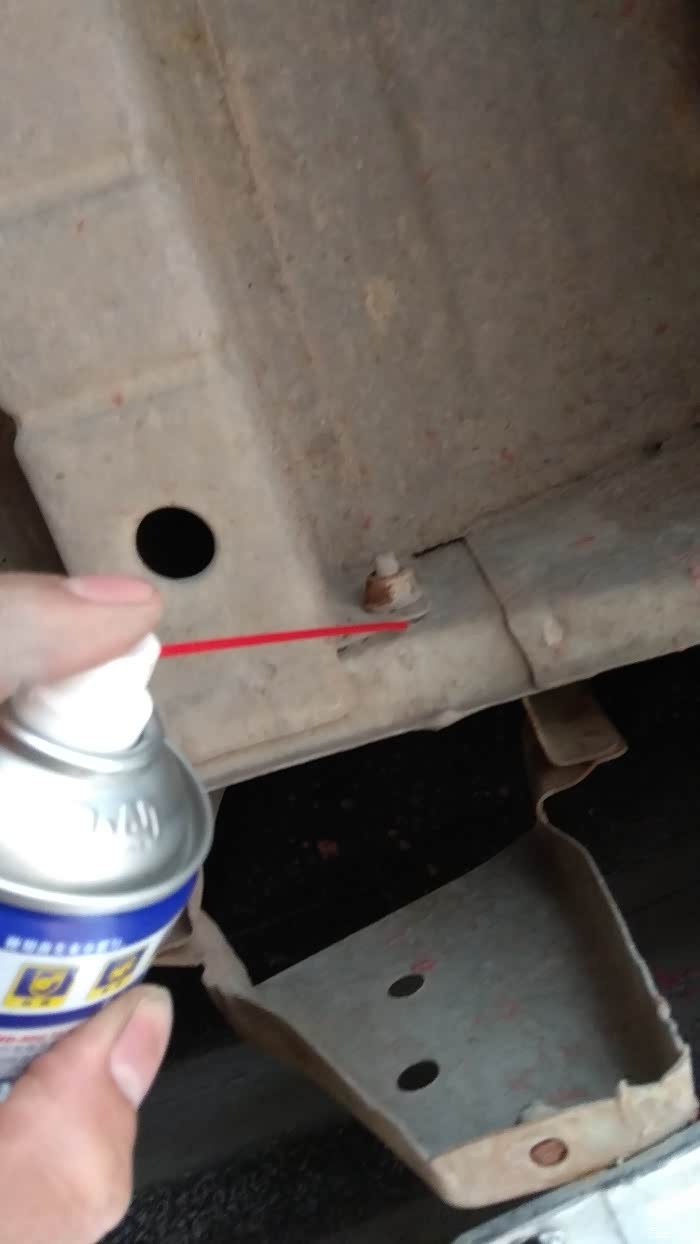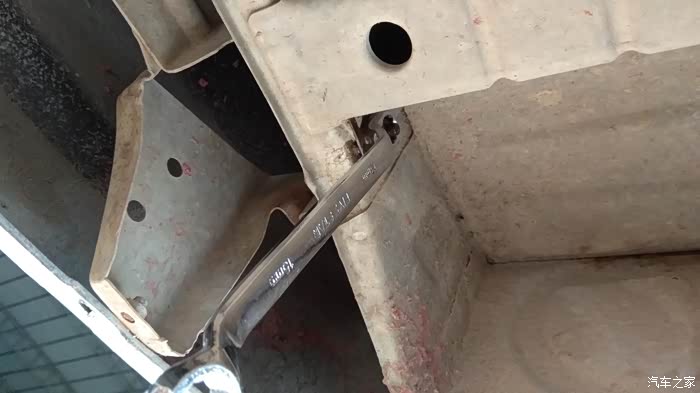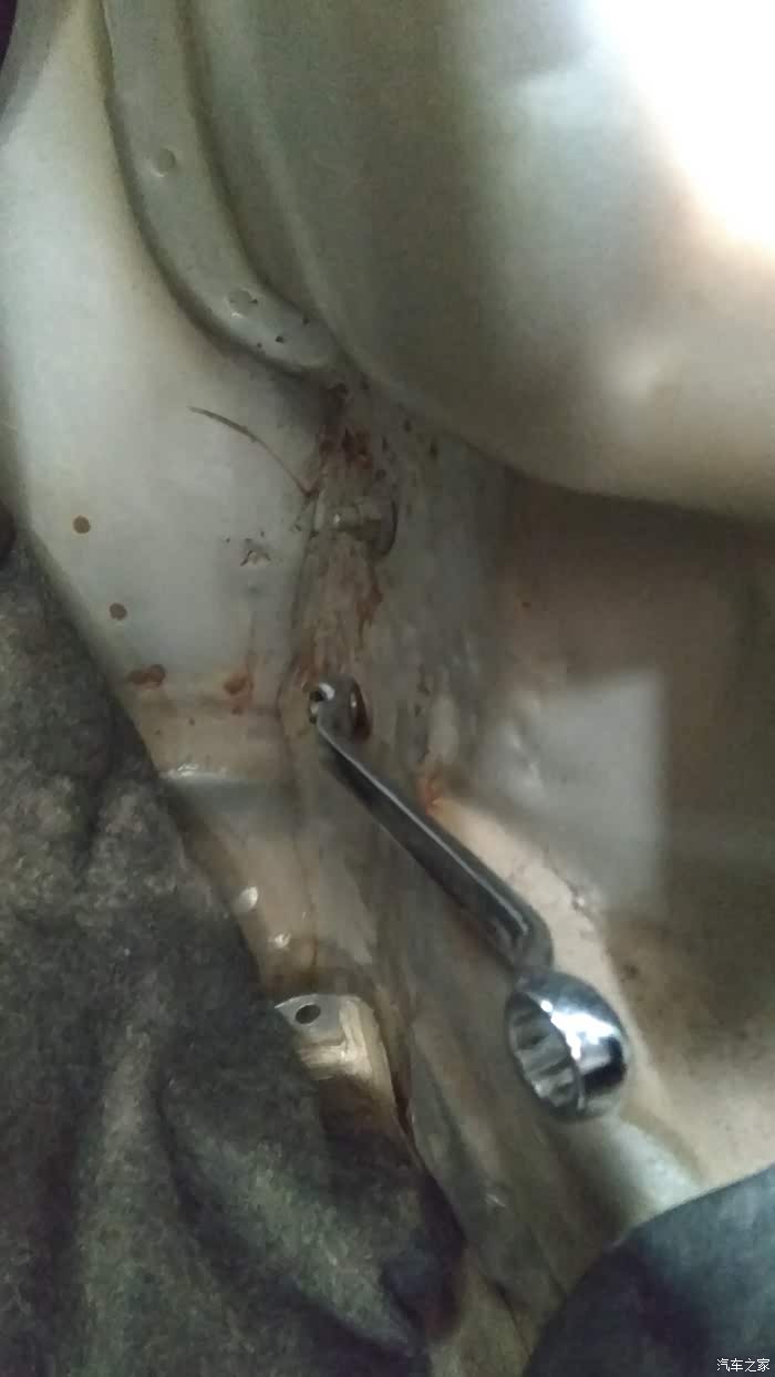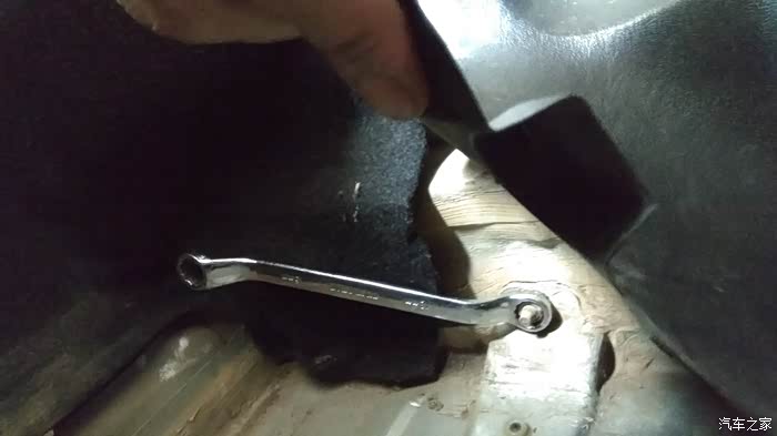 接着准备拆底下的螺丝,人躺到纸板上,螺丝是13MM的,一把13MM梅花扳手就可以干活了