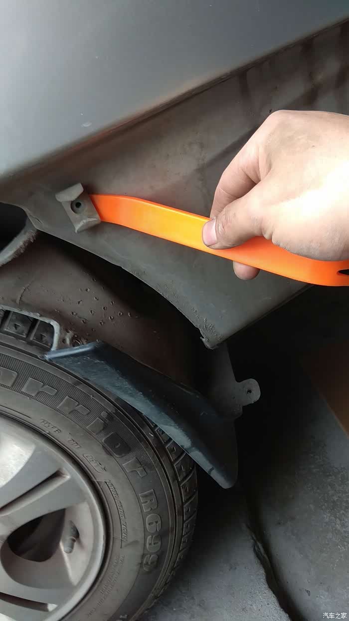 当抓住挡泥板往下拉的时候,保险杠和后叶子板的缝隙变得很大,就说明这个卡扣卡不住了,要换。这次顺便也换了,正好我买支架的时候想到了,一起买