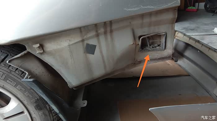 打开后背箱,后保险杠下面垫纸板,人可以躺着拆