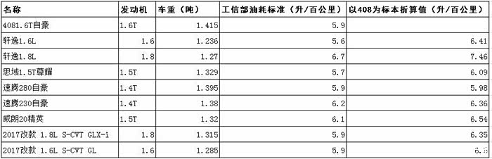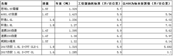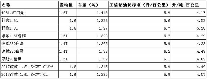 车辆的油耗是众多车友关心的话题,有的车友希望了解车辆的百公里油耗高低,有的车友也经常晒自己车辆油耗的高低,更有车友喜欢选择几款同级别车型来对比各车型之间的百公里油耗,这就涉及一个比较标准问题。理论上应该以工信部的综合油耗标准作为参考指标,毕竟这是标注在每一辆待售车辆的前挡上,厂家一般也不敢随便作假,可信度应该是最高。但有部分车友并不认同,喜欢用车友之间用车油耗来比对。对此,个人还是觉得应该以工信部的综合油耗标准作为比较依据,原因是各种车型如果都以此为依据,那测试的标准是一样的,即使有误差也是一样。而车友之间的油耗比较的可信度相对要低一些,因为即使是相同的均速下也会有正、负0.5公里/小时的均速误差。还有影响油耗准确性的是个人的驾驶习惯,有的车友看着均速是一样的,但有的在驾驶过程中一脚油门一脚刹车的;有的车友在相同均速下会尽量利用油门控制车速,尽可能的去少踩刹车,再有的是还充分利用自动启停功能,让油箱里的汽油都燃烧在前进的道路上。因此,个人认为,同型车相同均速下的百公里油耗也是有差异的,特别是不在相同均速下去比同型同排量发动机的百公里油耗无异于耍流氓不同车型的百公里油耗比对还需要考虑车子的重量、三围、轴距,如果只以相同均速去比油耗也无异于耍流氓!因为,根据能量守恒定律,不同体积与重量的物体要运动到相同的距离,需要的功耗是不一样的,各种车辆的百公里油耗比对也是如此。因此,合理的比对方式应该是以吨为基础的百公里油耗,也就是每吨车重百公里多少升的油耗,这样在相同均速下的油耗比对标准才是一致的,即为:升/吨.百公里。在此抛开车辆的三围、轴距因素,仅以车重为例进行比对。几款A级车的升/吨.百公里油耗比对看请看图表。名称发动机车重(吨)工信部油耗标准(升/百公里)升/吨.百公里4081.6T自豪1.6T1.4155.94.17轩逸1.6L1.61.2365.64.53轩逸1.8L1.81.276.75.28思域1.5T尊耀1.5T1.3295.74.29速腾280自豪1.4T1.3955.94.23速腾230自豪1.4T1.386.24.49威朗20精英1.5T1.326.14.62卡罗拉1.8LGLX-i1.81.3155.94.49卡罗拉1.6LS-CVT1.61.2855.94.59本帖旨在抛砖引玉,欢迎理性讨论、指教。