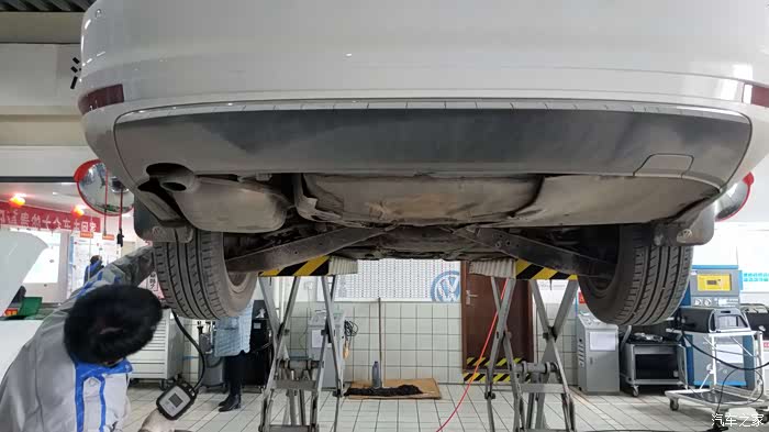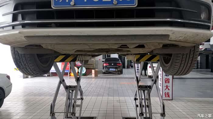 速腾的底盘还是挺平整的,原厂的发动机下护板质量也挺好,除了正常磨损外尽然还挺完整,这说明什么?说明该车主人我车技了得,用车细心