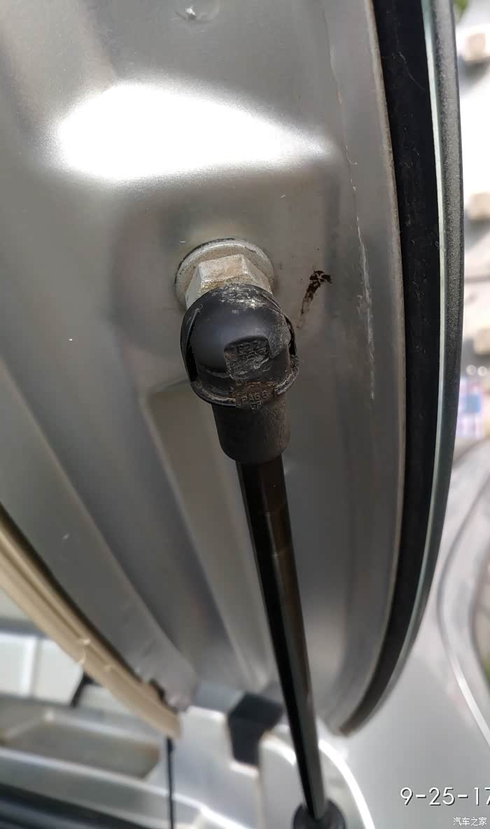 再拆撑杆和尾门连接处,拆这里前,用头顶着尾门比较好。