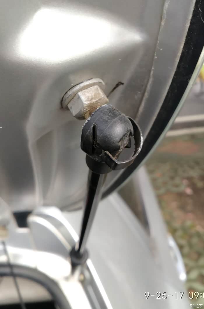 8年老车,原厂尾箱撑杆力度不够了,不能正常将尾门撑起,需要手向上拉才行。发现某宝上有撑杆卖,DIY之前都要学会如何拆装才行。下面是练习如何将原车后备箱撑杆拆下和装上的过程,其实很简单,需要一点点动手能力,并用点力气即可。工具:小起子(口薄一点,否则差不进去)棉手套(防护)
