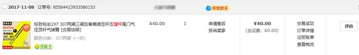 虽然问题一直没解决,但卖家答复的态度还是不错,货停在菜鸟快一周后,终于顺利转发并很快到我所在的城市了。今晚顺利将新的撑杆换上,不再有声音,这次吸取之前安装的教训,撬金属片时更加小心了,防止金属片变形,安装上去后,固定很好,一点都不会松。原车后备箱撑杆不够力的问题终于完美解决了。淘宝省钱的产品,让DIY过程真的不容易啊