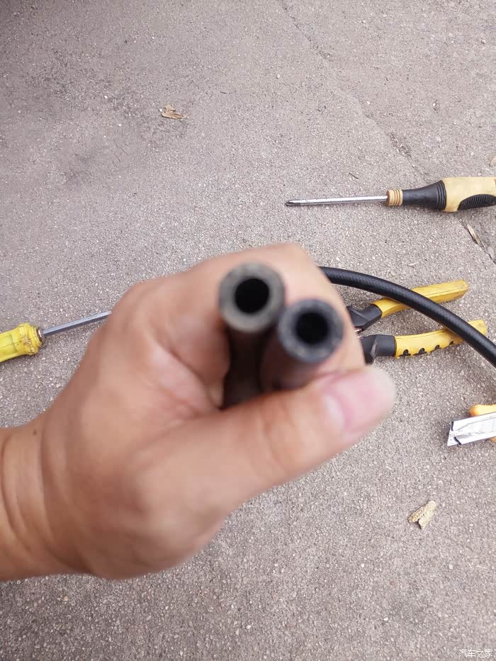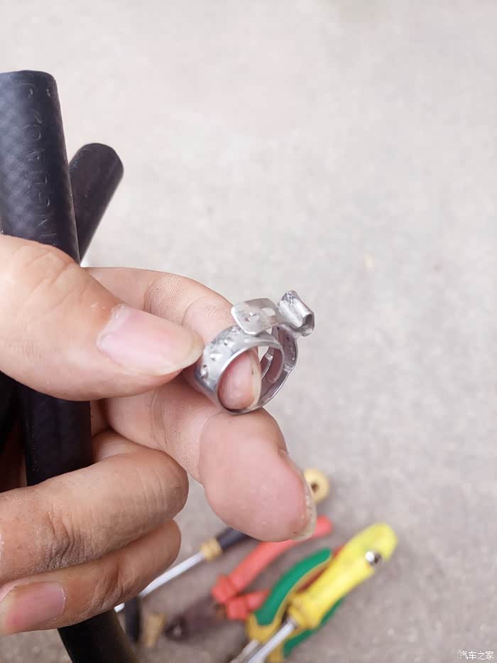 上回咱们说到,车里经常闻到汽油味,检查发现连接喷油导轨的软管处有漏油迹象,于是上了一道管箍,可是效果不明显。尤其管子中部有一片来路不明的油渍…七年多了,老化问题在所难免,于是决定买些输油管回来更换。