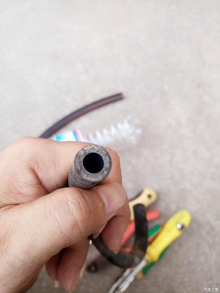 接的汽油正好拿来清洗一下新管,里面如果有微粒杂质也会对喷油嘴造成不小的伤害。搞完收工,谢谢观赏