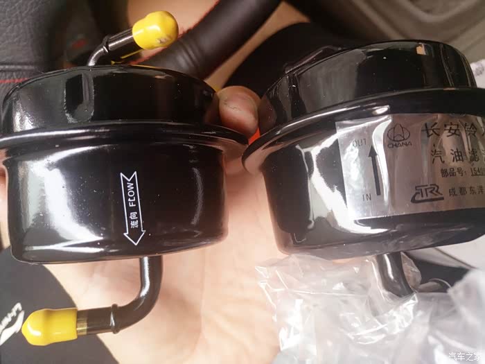 我勒个去外形差不多的两个汽油滤,流向标注居然是相反的。