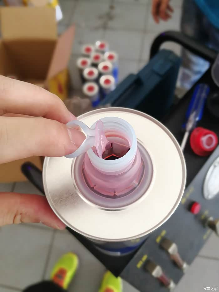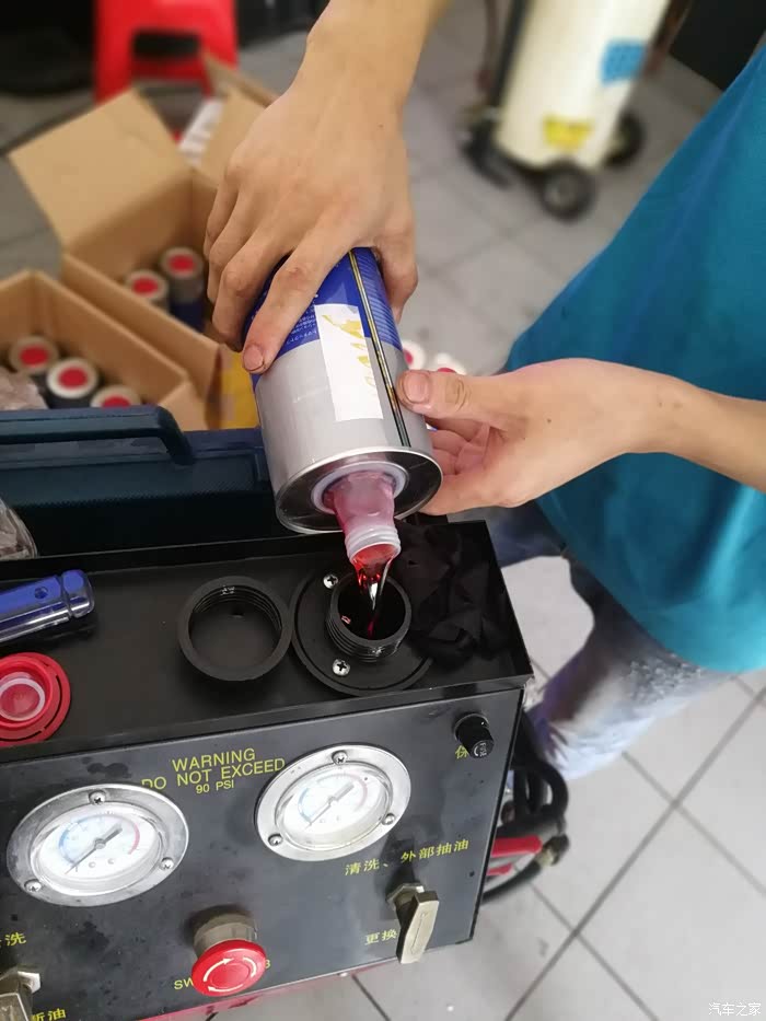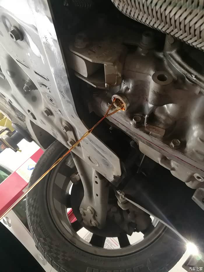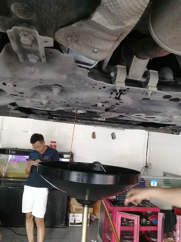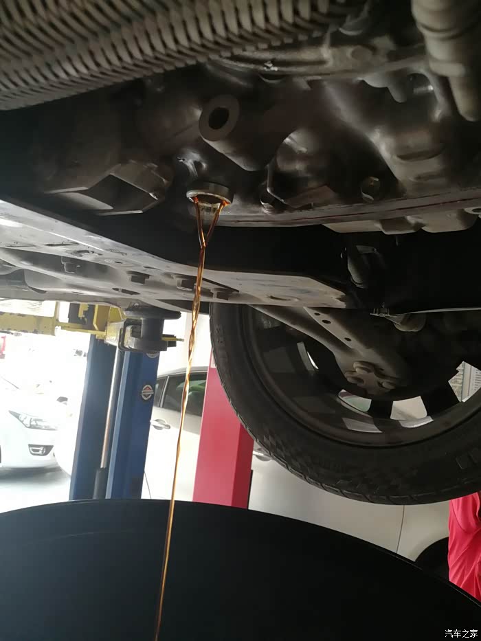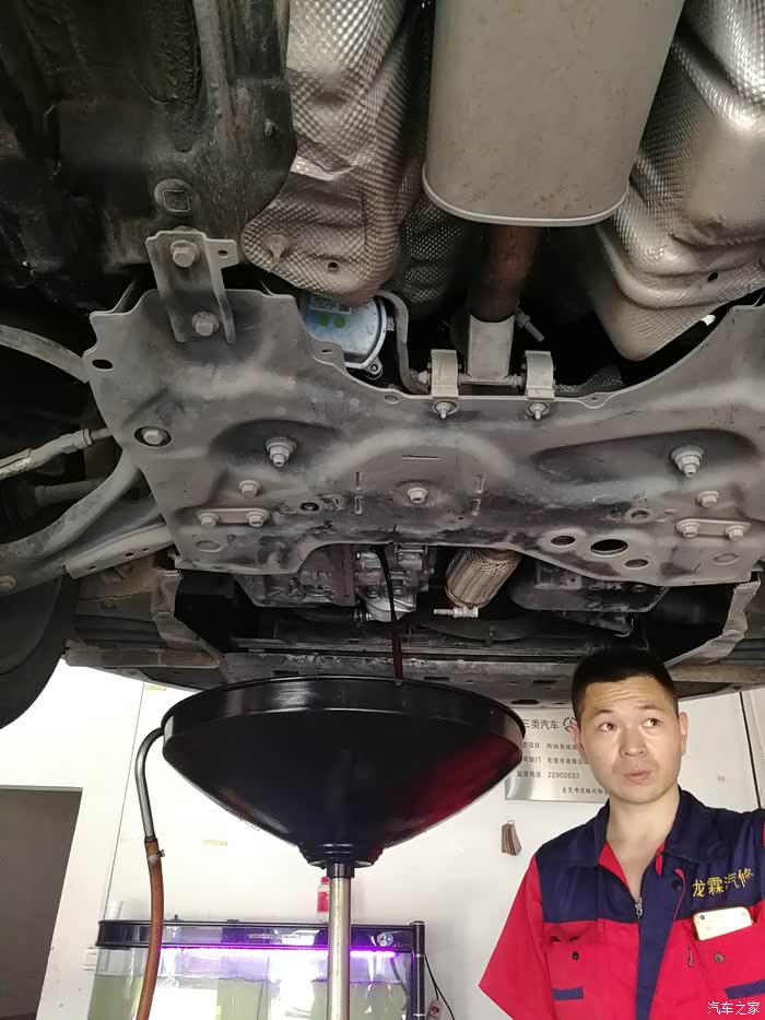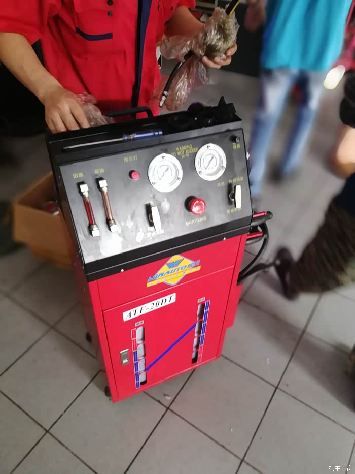 第一次,已经算比较黑了。换完之后,车要出去开个5-10公里,各个档位都到用到。目的是要让加进去的新油和大力鼓的旧油中和。因为重力法换,大力鼓内的油无法放出。只能用这种方法了。