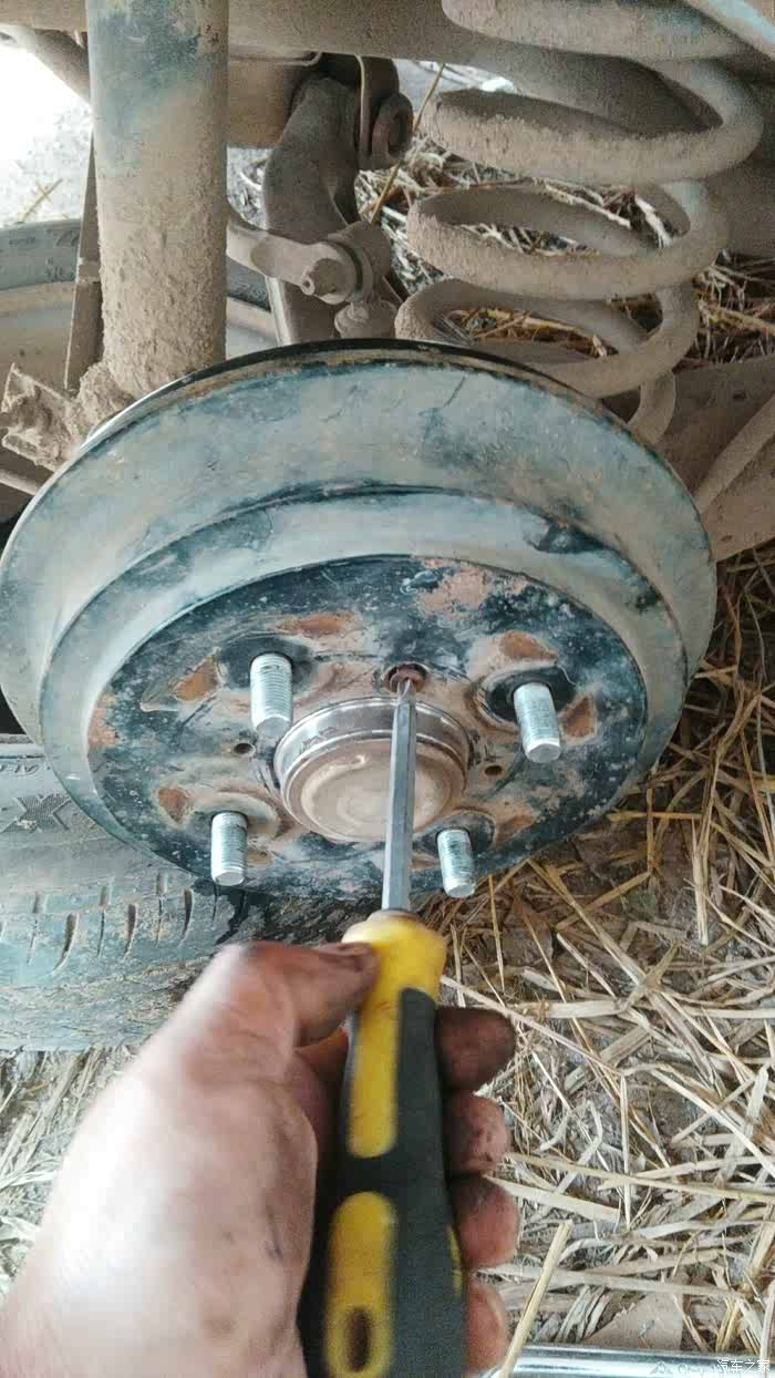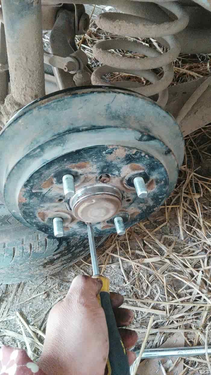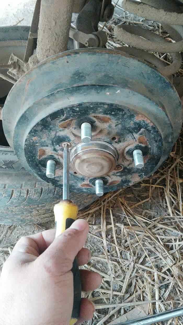 用螺母拧进去这样可以顶出刹车盘出来
