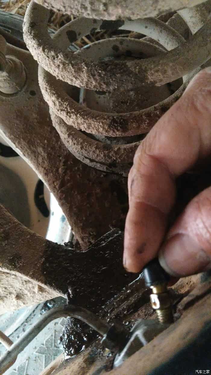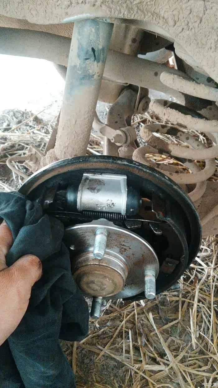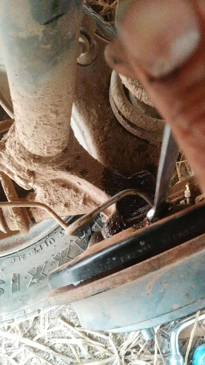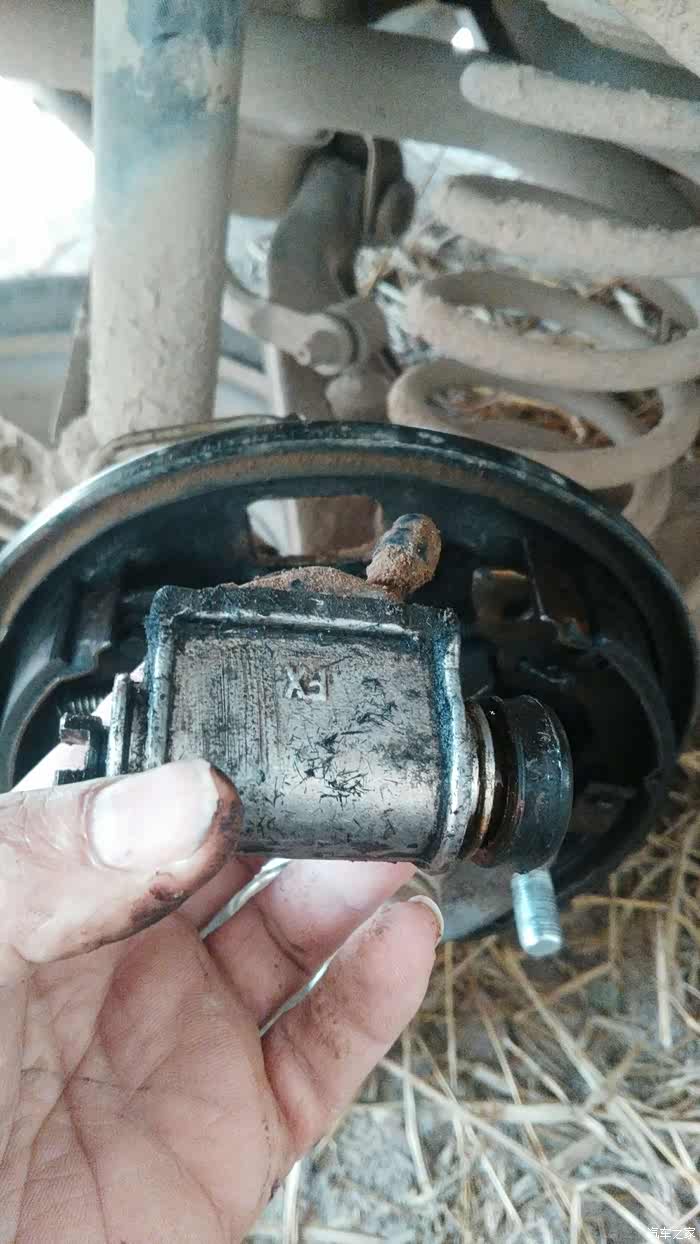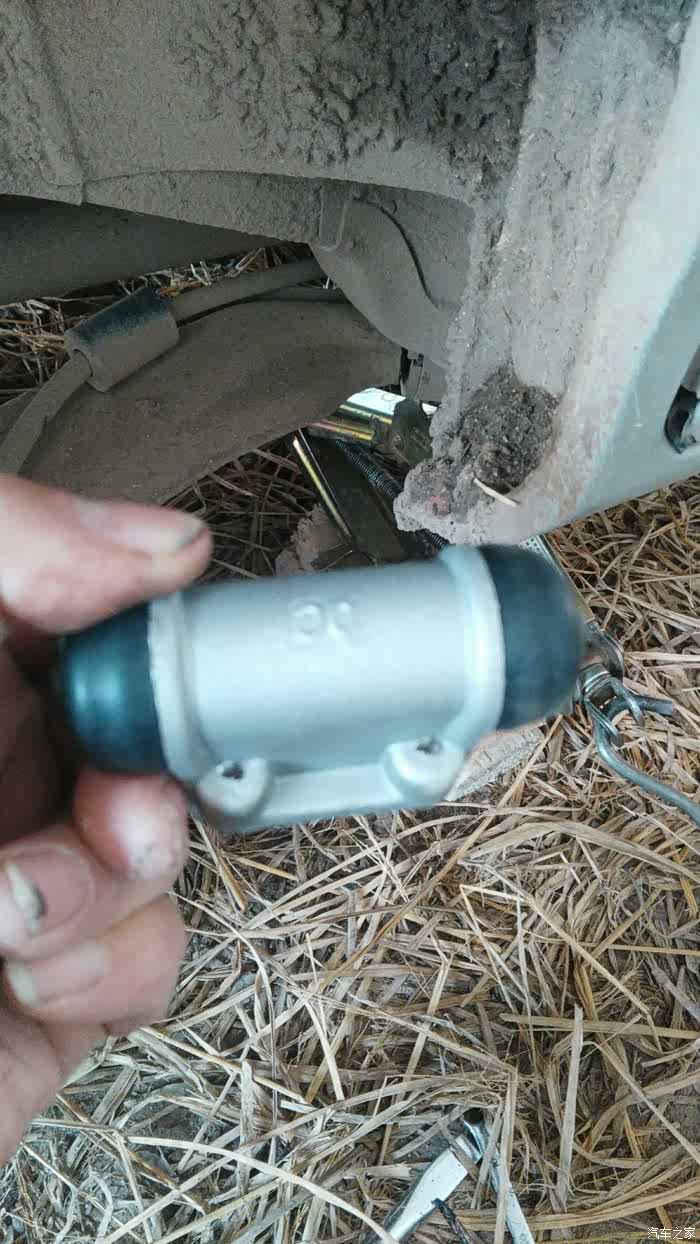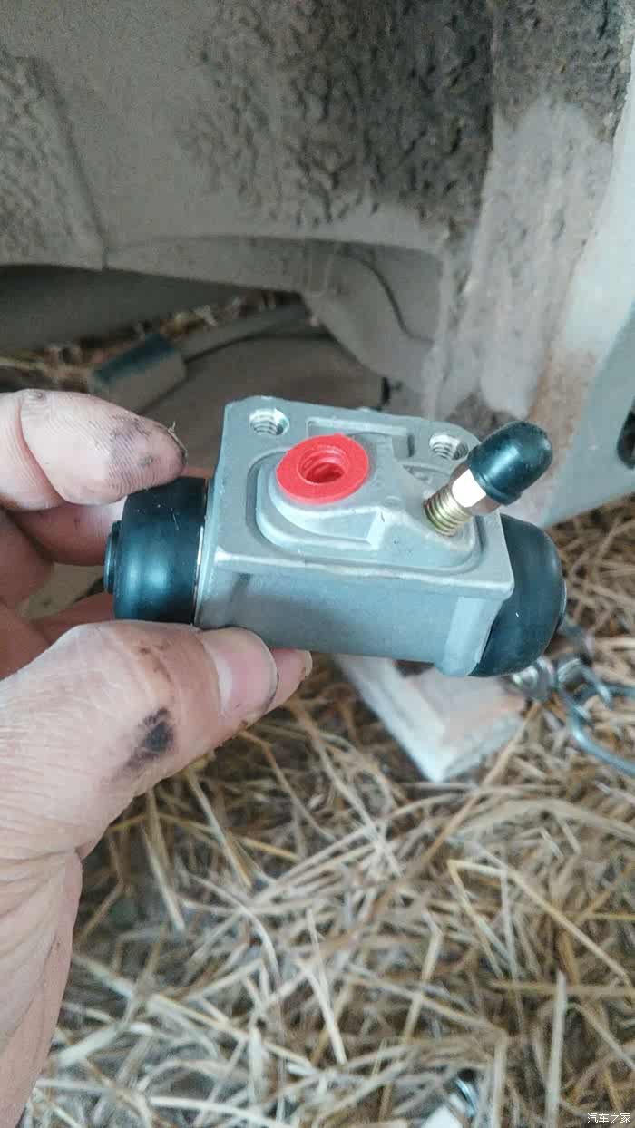 羚羊开着刹车系统灯亮起。经检查是右分泵漏油。今天自己亲手更换。如图所示