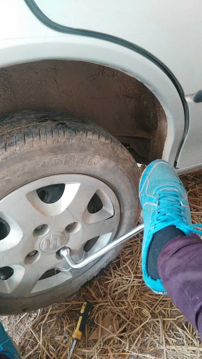 最后装好轮胎用脚加力