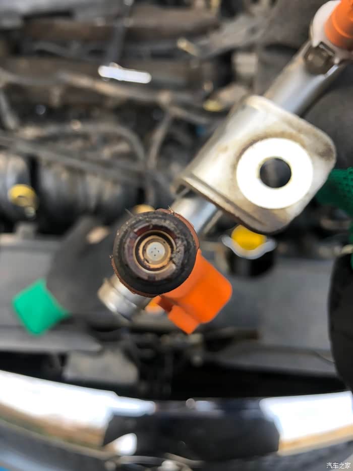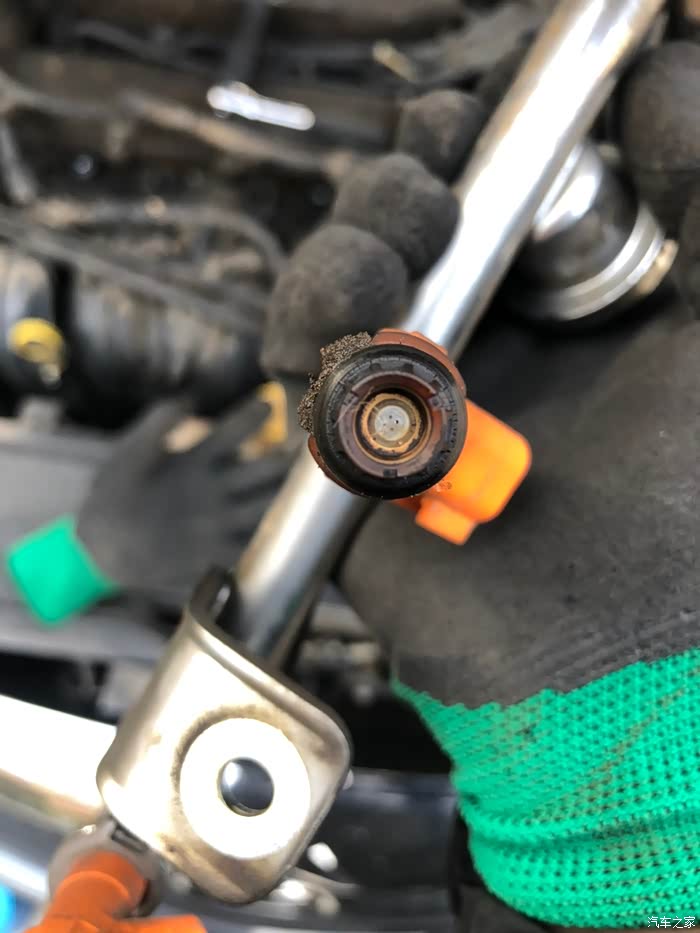 咦,里面竟然有铁锈,估计是时间长了喷油嘴支架里面锈蚀,可能跟油品有关吧