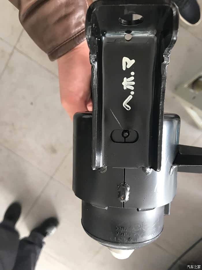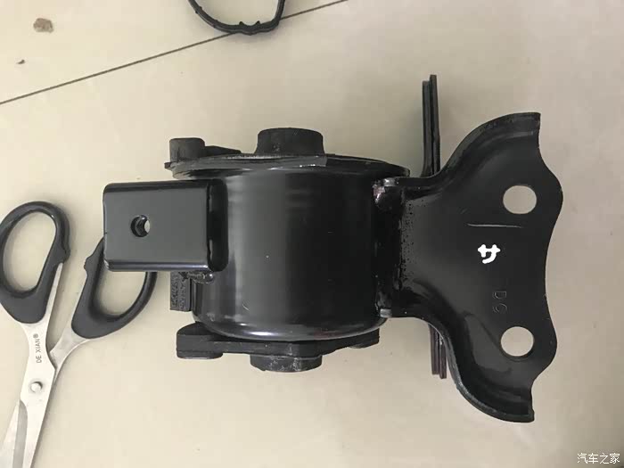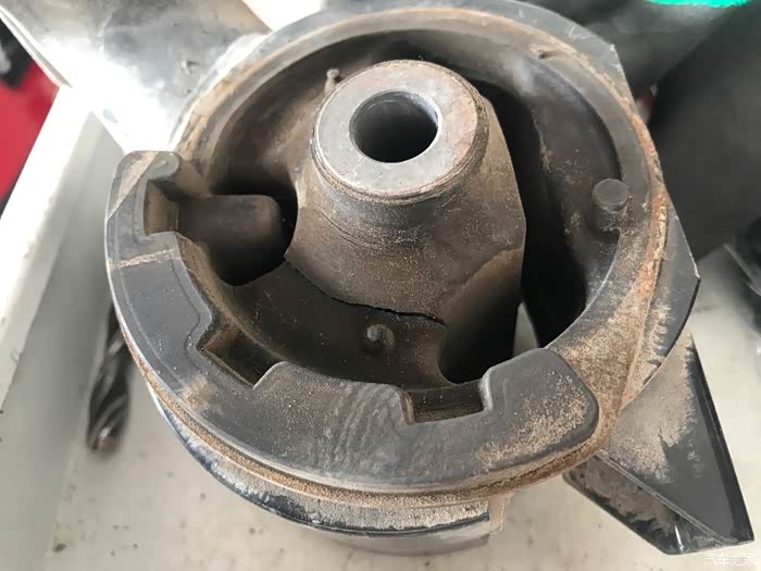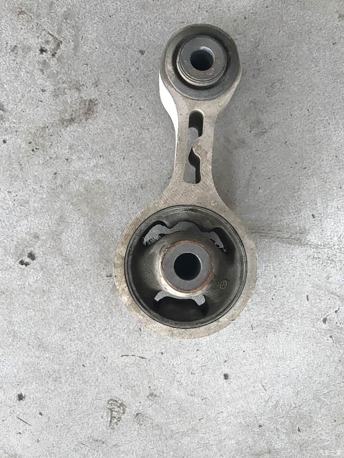 拆下车的左机脚,已经开裂了。凑合着也能用