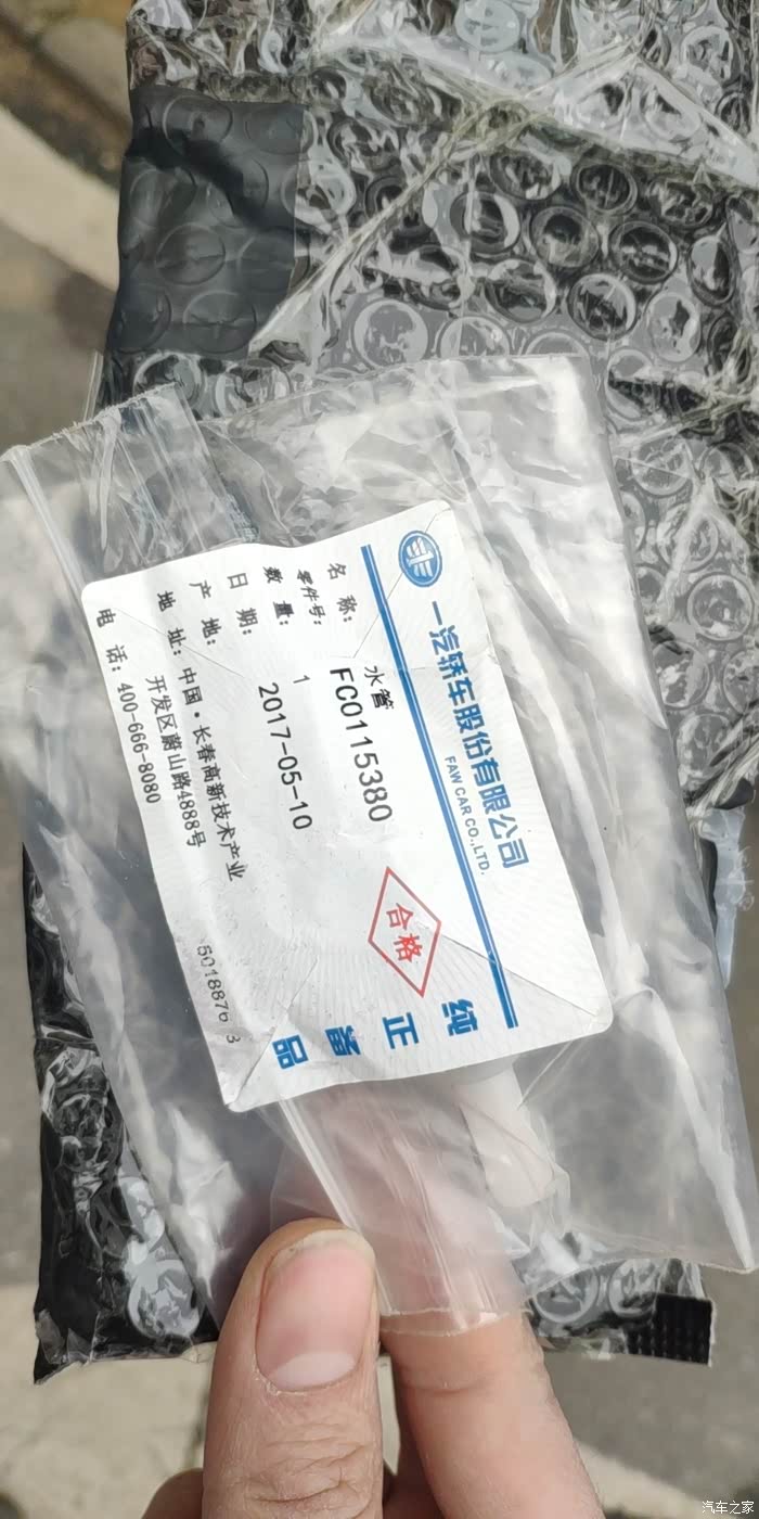 这个位置就是和原车的区别了,可能是因为后期批次问题,包括生产日期和包装也不一样,配件上面生产日期是18年4月份,包装上面是19年10月,这个也是正常的,毕竟是代工件,发到一汽仓库再打印新的配件信息