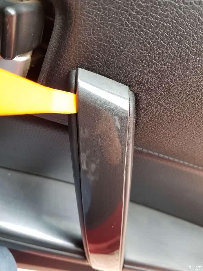 沿着小边就是翘,动作轻一点,容易坏,还不便宜这东西,拿下它以后就能看到把手上的两个螺丝了。