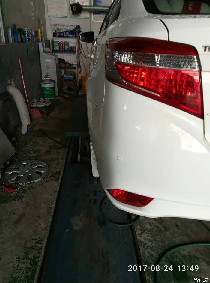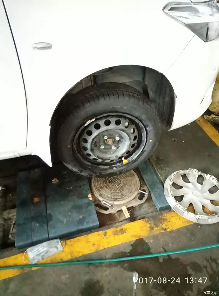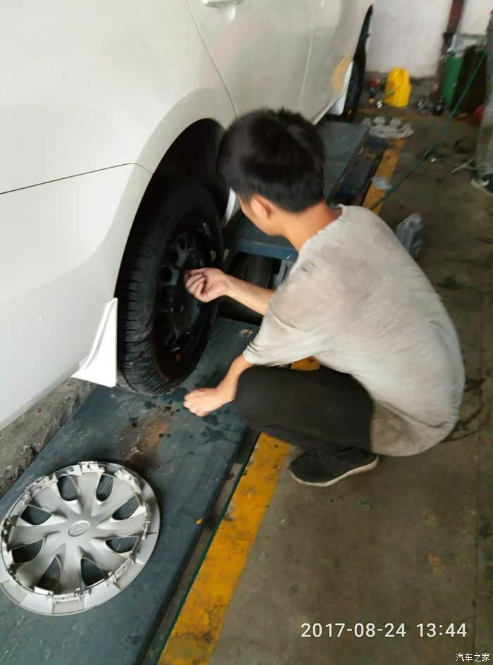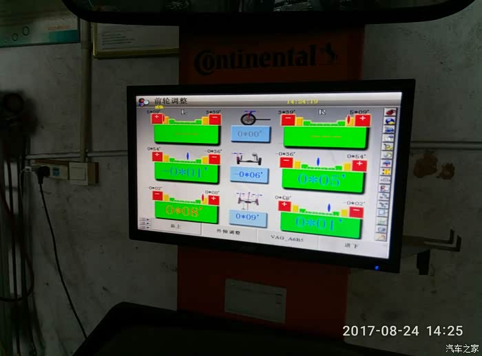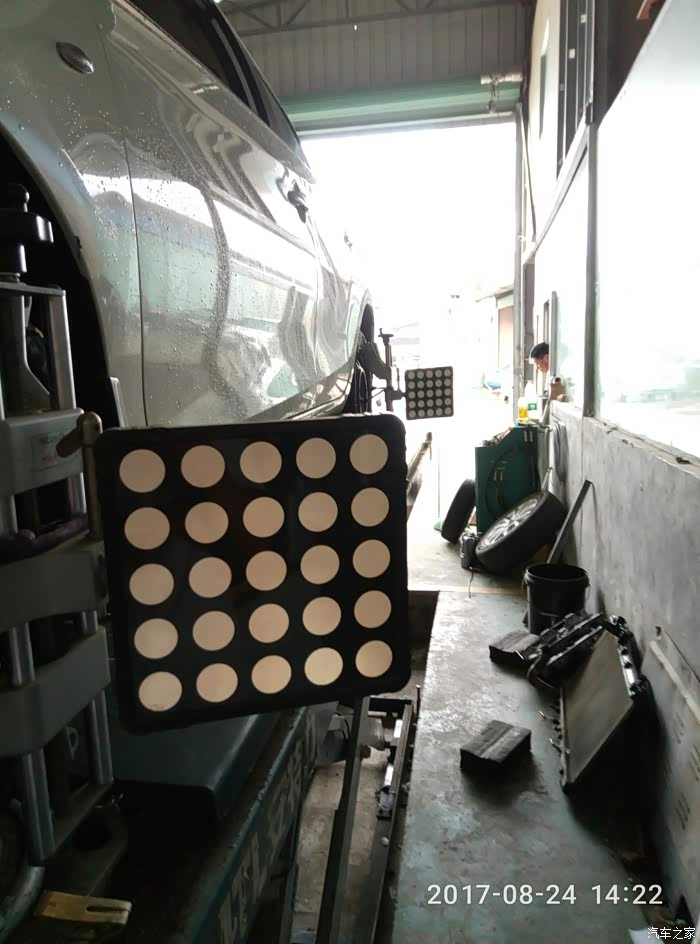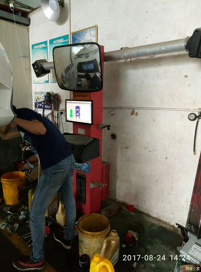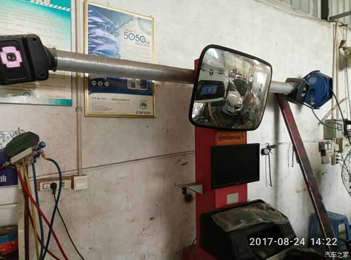 我再次要求店家做四轮定位(上周保养有做了,这次新胎也要重新校正下,不怕一万只怕万一嘛!保险)