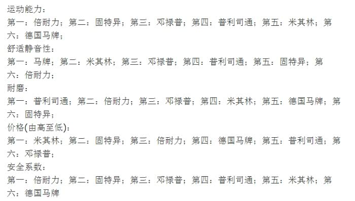 从上周日保养后,前天几天纠结着用什么品牌的轮胎,价格怎么样!问了维修店、专卖店、某东淘开始一系列查找等待。在某天的休闲时间看到了这样的一个排名