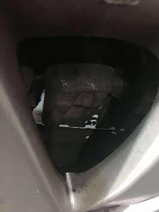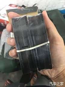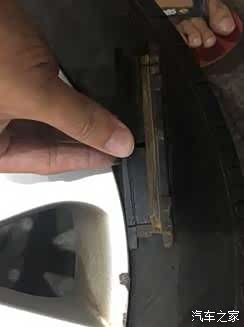 凑近点看,旧片磨损程度还是很高的,难怪有异响警报,PS:刹车盘都生锈了,下次换片时考虑一起换得了