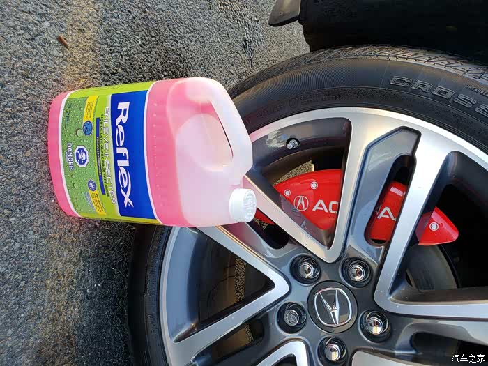 这是夏天专用的玻璃水,0度以上可用。加拿大的冬天往往都是零下10度,那时候就必须换成-40度的玻璃水,必须,必须,必须。重要的事情说三遍,不然水箱冻裂了就惨了。东北的车友们也肯定清楚此事的重要性。