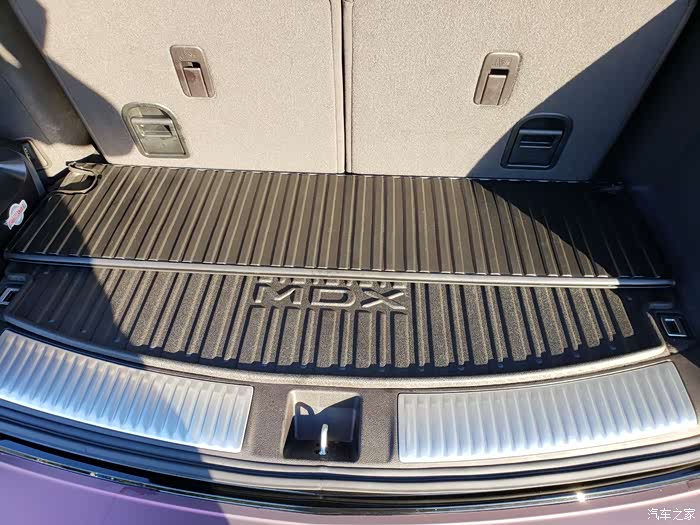 最后推荐一个挺不错的附件,这个MDX原厂的后备箱垫挺实用的,照片里是第三排座椅使用的情况下折叠效果,第三排放倒,这个垫子可以铺开到第二排座椅。我有一次搬家,后备箱的调料撒了,幸好又这个垫子,水枪冲一下解决了。