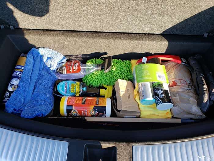 后备箱隔板下面放满了我的洗车神器,哈哈哈哈哈