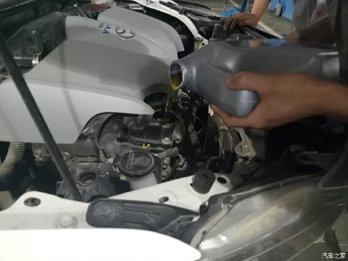 小威被升起来,检查一下底盘、轮胎以及胎压、旧机油要就出来的。要尽量留干净呢。