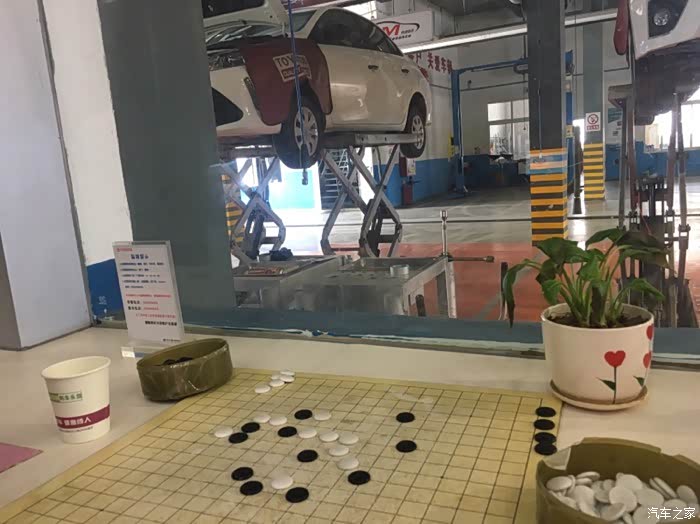 接下来,我就跟媳妇去休息室等着了,SSSS店的休息室刚好可以看到修车间,我跟媳妇边下棋边等着我们的小威做保养,我媳妇还跑去问给保养的小师傅说车大灯开着为啥日行灯也不灭咧?小师傅说我们针对的服务有分别,这个我也不是太清楚…呃…好吧,媳妇就回来了