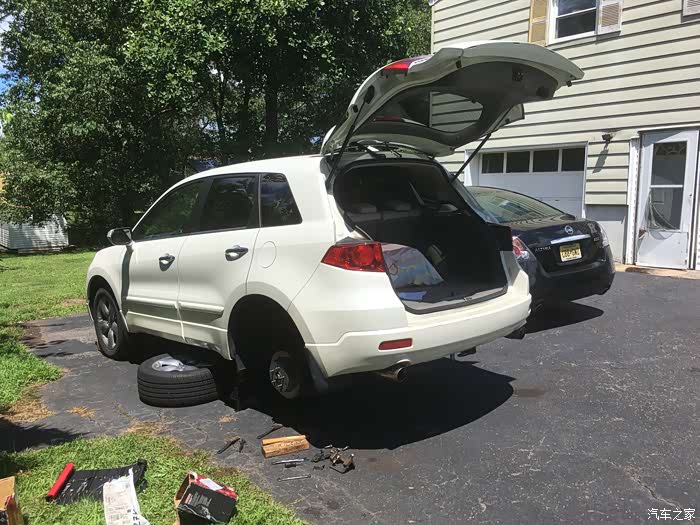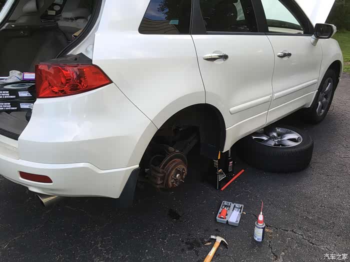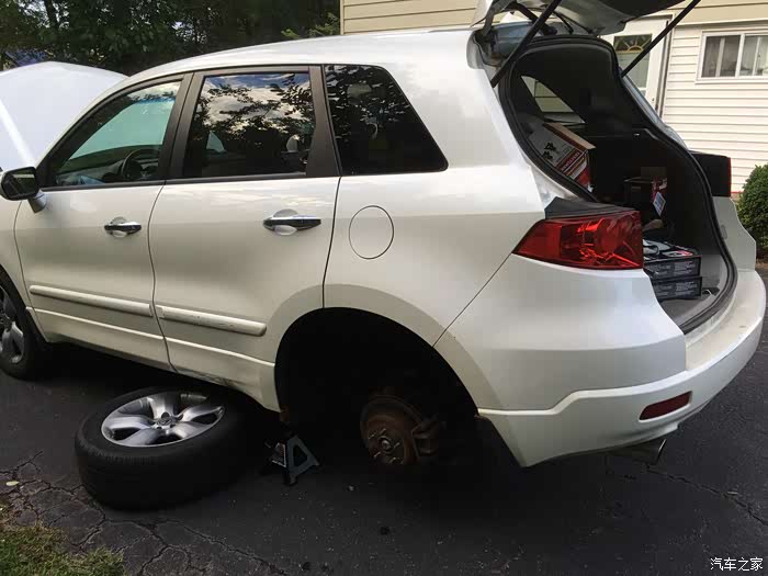 RDX论坛朋友们好!我朋友这辆讴歌RDX是2009年的,是讴歌RDX的第一代。我之前发过给这辆车换转向助力油,冷却液,机油机滤的帖子。上次换油时候给他检查了刹车,发现后刹车盘片已经出现了铁磨铁的情况了。事不宜迟,叫车主买了后轴的两个新盘,和一套四片的刹车片,品牌上为了省事没有网购邮寄,直接在连锁汽配店Advance Auto Parts的网站下单,店里提货,用的是他们店里的牌子Carquest。 店家网站查零件号时候发现这一代讴歌RDX的刹车配件跟同年代的我的本田CRV是一样的。 网上一查,原来RDX和CRV本来就是同平台的,大小差不多,变速箱也都是本田的老5AT,主要区别在发动机,RDX是2.3涡轮,CRV是2.4自吸。当然,人家挂讴歌标的,整体用料做工更好。这也就相当于雷克萨斯NX和我的丰田Rav4的关系了。 这给他换刹车,正好给我以后给自己车子换练手了。
