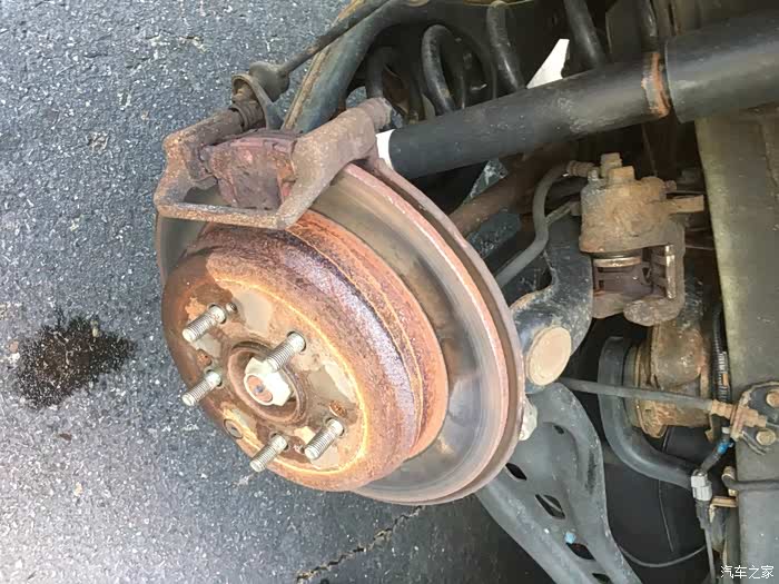 二是那个卡钳滑动销锈死,有的已经没法滑动了,有的滑动销的橡胶保护套也破了。