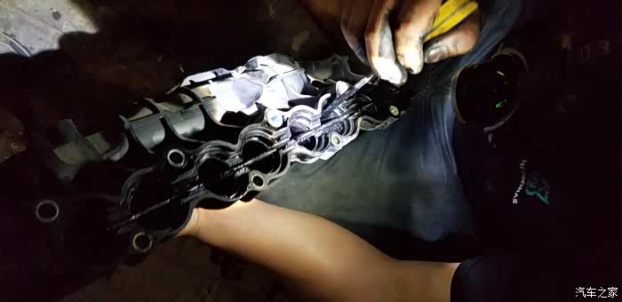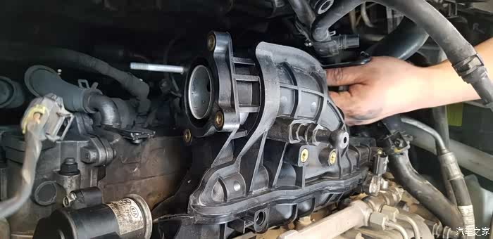 准备拆进气歧管、节气门,除了灰尘没有油渍的发动机。