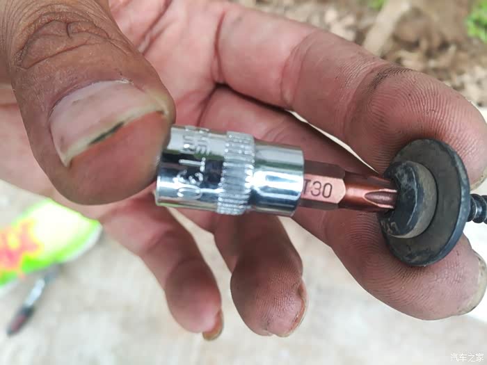 拆发动机护板用到的梅花内六角,型号是T30,有7个螺丝。