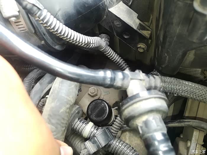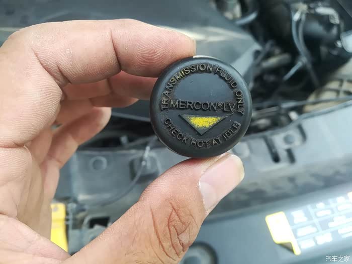 在一堆线束下面找见,添加变速箱油的位置、往上一拔那个盖子就取下来了。