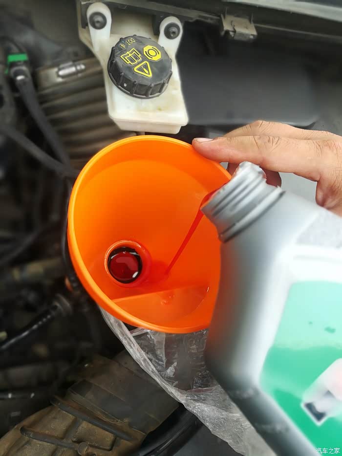 本来是想换刹车油了,外面这个刹车油壶里都空了,想了肯定进空气了,仪表盘也没报警,结果一看里面还有个壶了,传感器也在里面安装着了,心里也就放心了,没进空气。