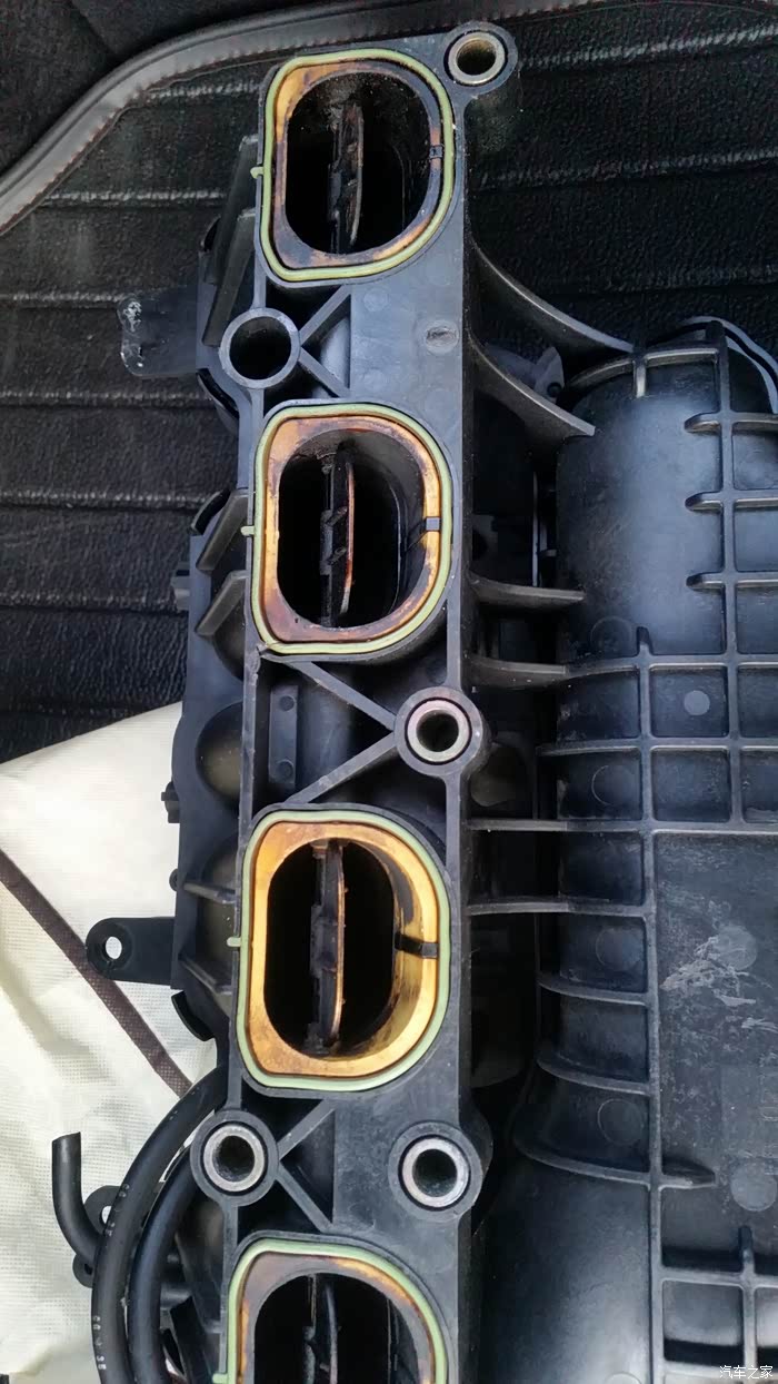 安装到位!说说感想:换了进气歧管,之前的异响的确消除了。又消灭了一个噪音源,发动机声音更宁静,透彻。但是疑惑的是,之前的老进气歧管翻板并未坏,那么,造成之前异响的部位是哪里?究竟什么原因?懂行的车友可以给扫个盲!