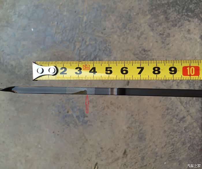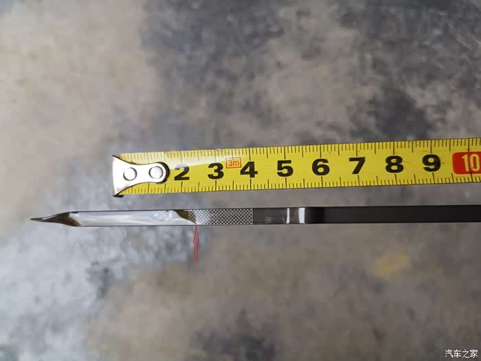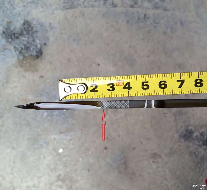 14699公里二保,加0W-20全合成机油5.3升,机油位刚好位于机油尺网格上线,机油尺网格上线至下线一共有19小格,长度19mm,每1小格1mm。