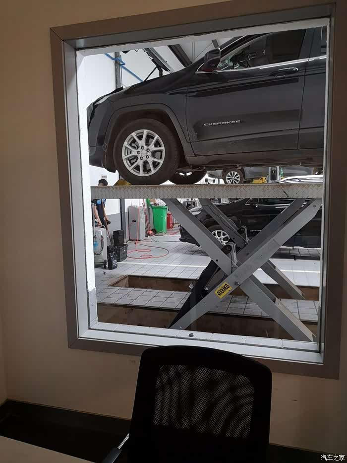 从4S店司机休息室可以看到维修车间全貌。