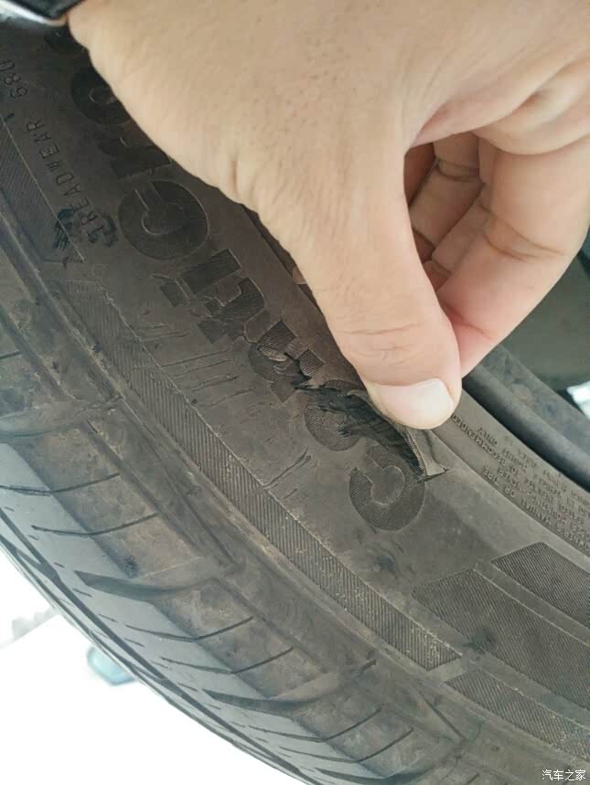 看吧,这轮胎给刮的,还能抢救一下哈。