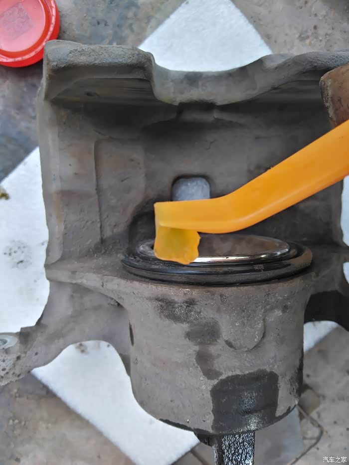 先把刹车活塞清理干净,这就是日产的质量,八年的车了,轻轻一擦,镀鉻层照样光亮。