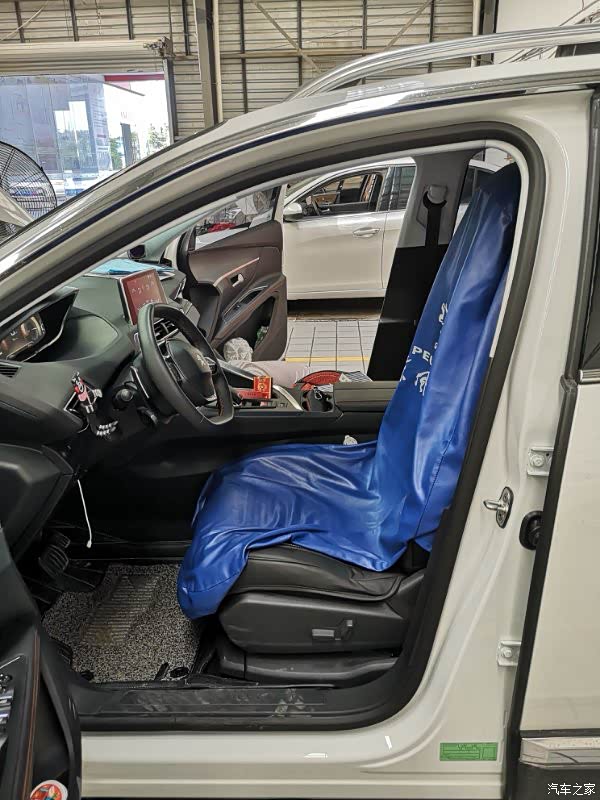 师傅贴心的给我的驾驶座椅上套上保护套。