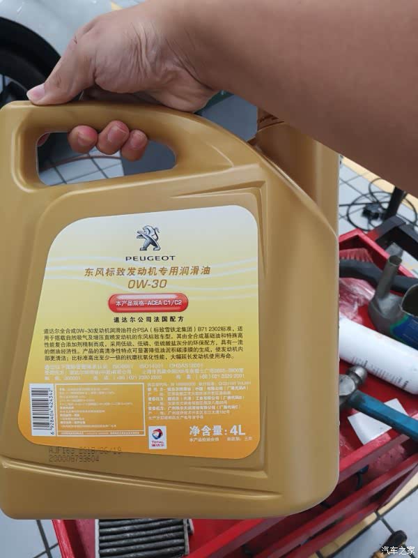 师傅在给我更换机油。我是加价更换的道达尔全合成机油,据说这样对发动机更好。