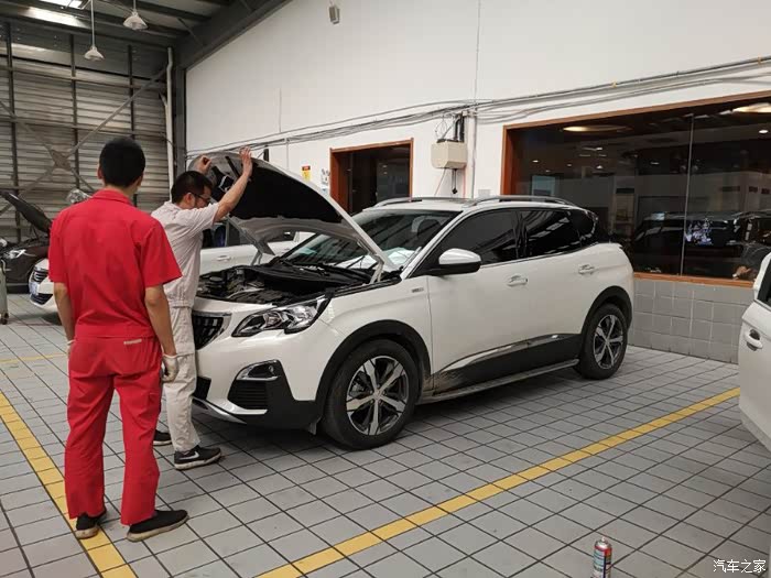 师傅打开引擎盖,查看车辆状况。说道这里,我们的小狮子引擎盖还是挺厚实的,内衬的隔音棉效果也不错,这给了我们更优秀的驾乘体验。