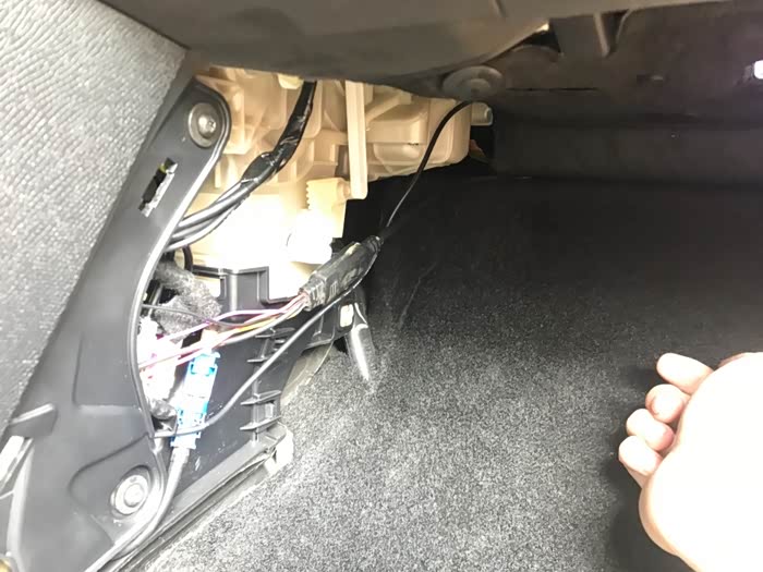 杂物箱下边的这个护板也拆掉