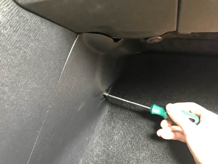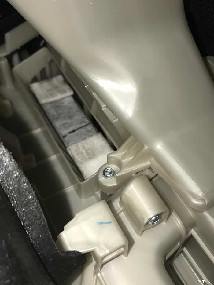 先从副驾这边 去掉盖板上的这个螺丝小盖板