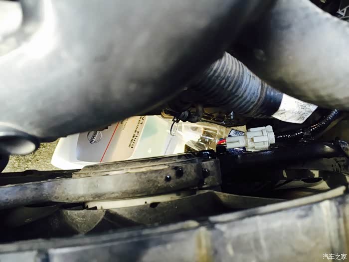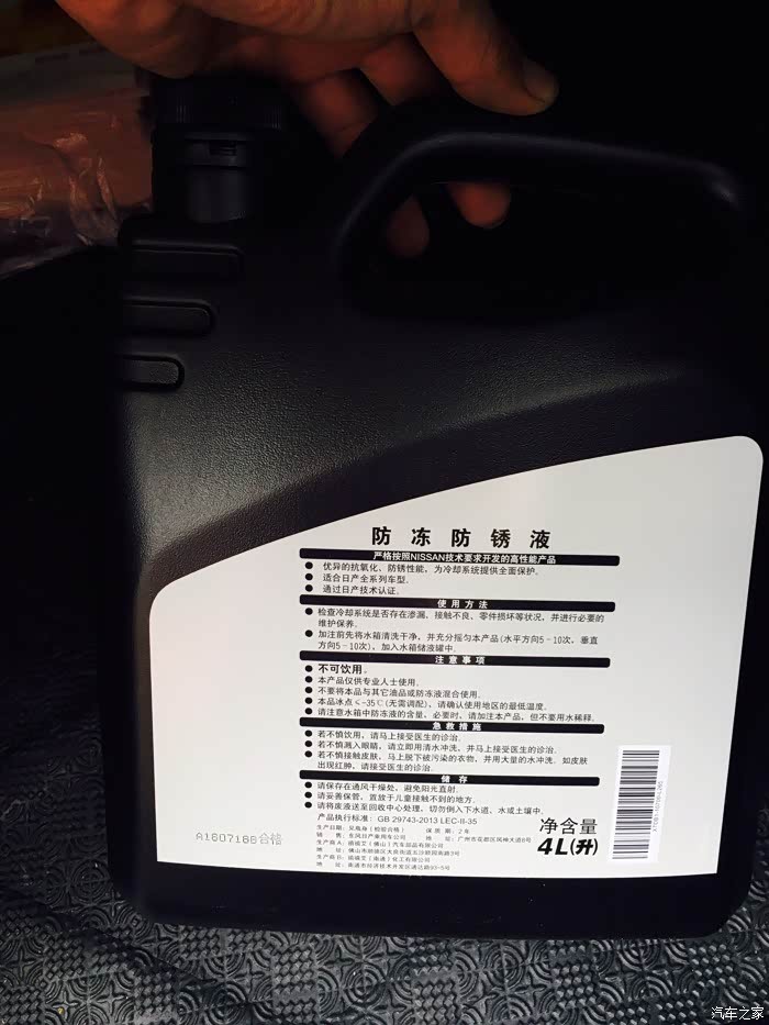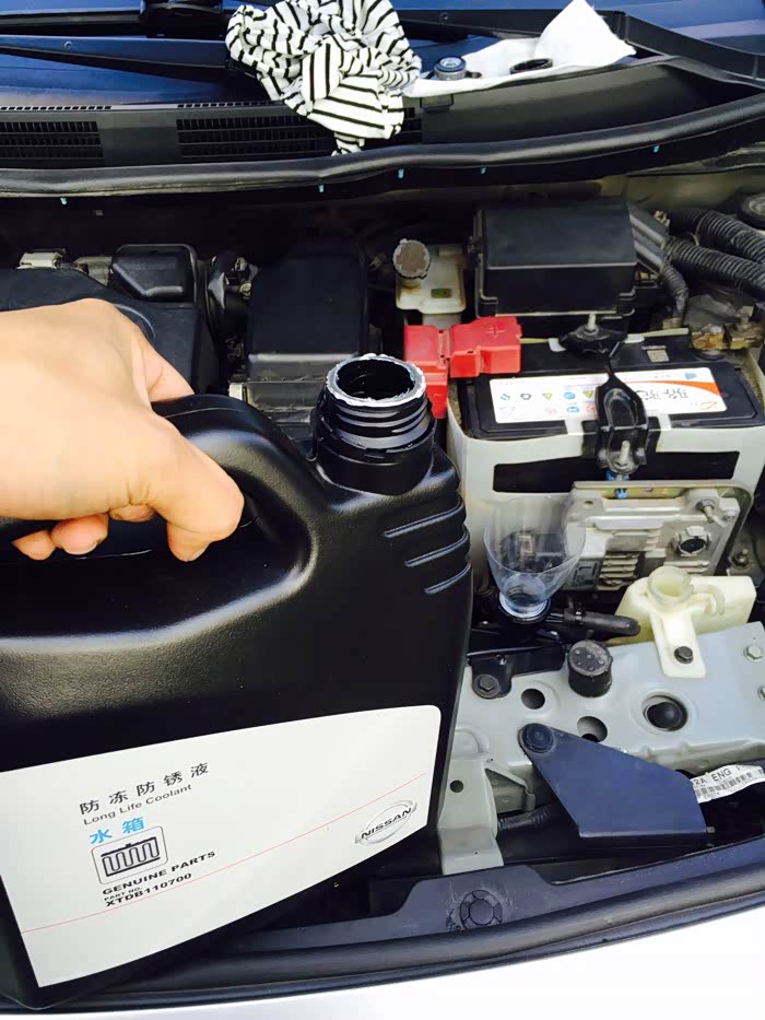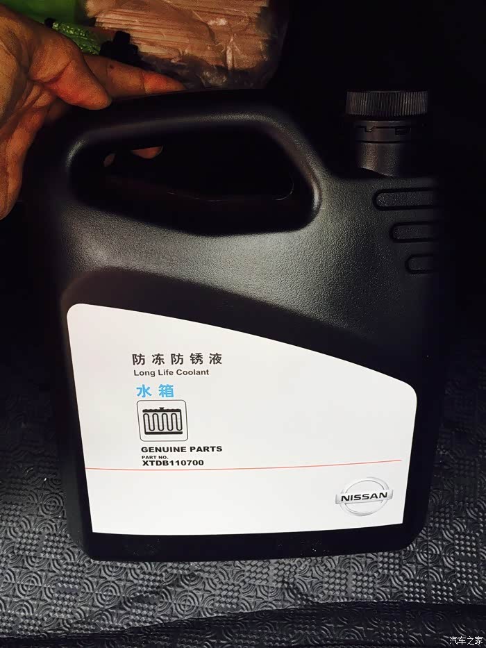 早上去4s帮盆友的奇骏拿变速箱油,变速箱纸滤芯,油底壳垫子,我顺便拿了一桶防冻液给我的阳光用,一桶防冻液120。上午和朋友去外面循环机换完变速箱油,下午我自己去找个空地停车位换防冻液,下面开工了: