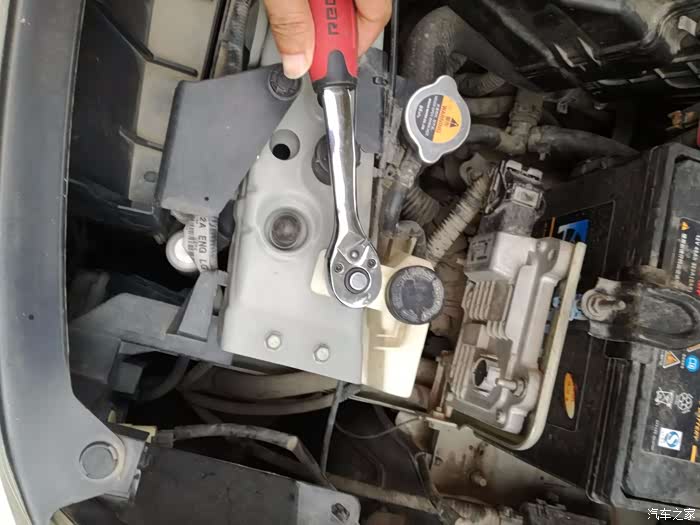变速箱上加油口就在这个水箱下面~