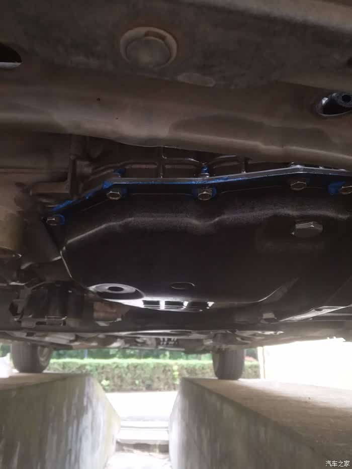上底壳悲催了,由于螺丝上有油,紧螺丝时没太多感觉。用力过猛,把一根螺丝紧断了。。。。急忙开车去当地4S店准备配一个,4S店里遇到修车师傅是熟人,热心的跟我把车升起来检查了一下,断的螺丝不好取出来,店里换变速箱油一般都没有拆底壳的,断的螺丝没有现货,还要订货。而且变速箱油没有发现渗漏,故不作处理。以后我只能经常观查一下了。