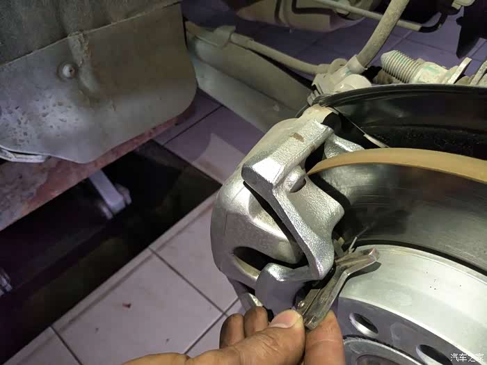 还要量一下刹车片的磨损情况。