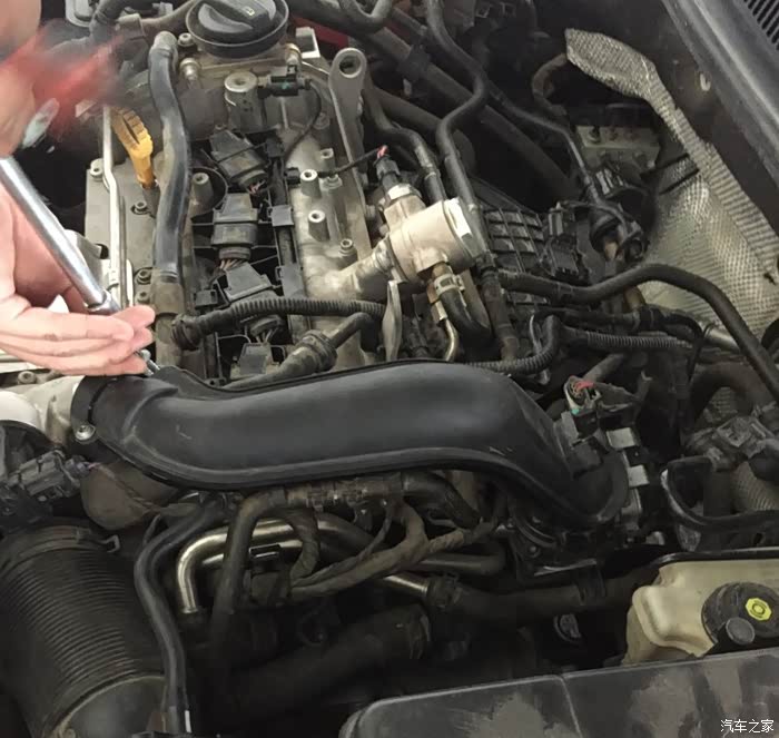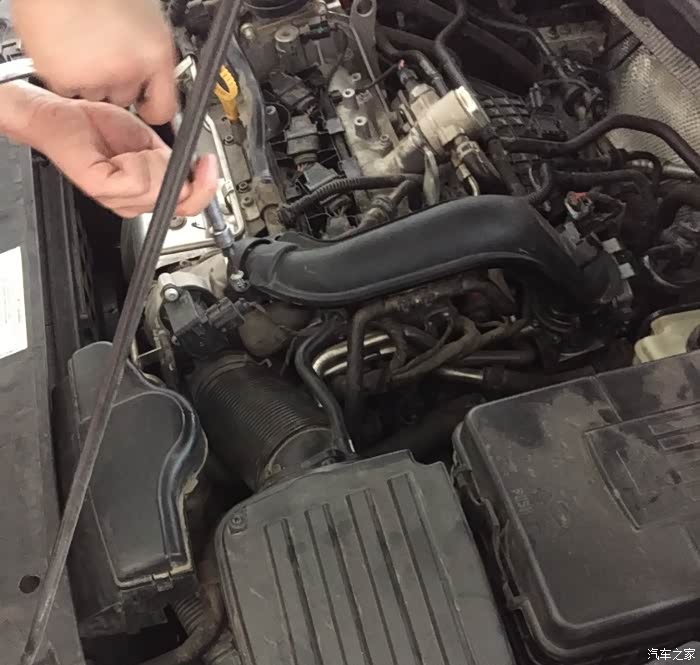 我没注意的空他就帮我把节气门管道拆掉了,前后4个螺丝吧,还有3个线束卡扣,节气门孔哪里还有2个卡扣。